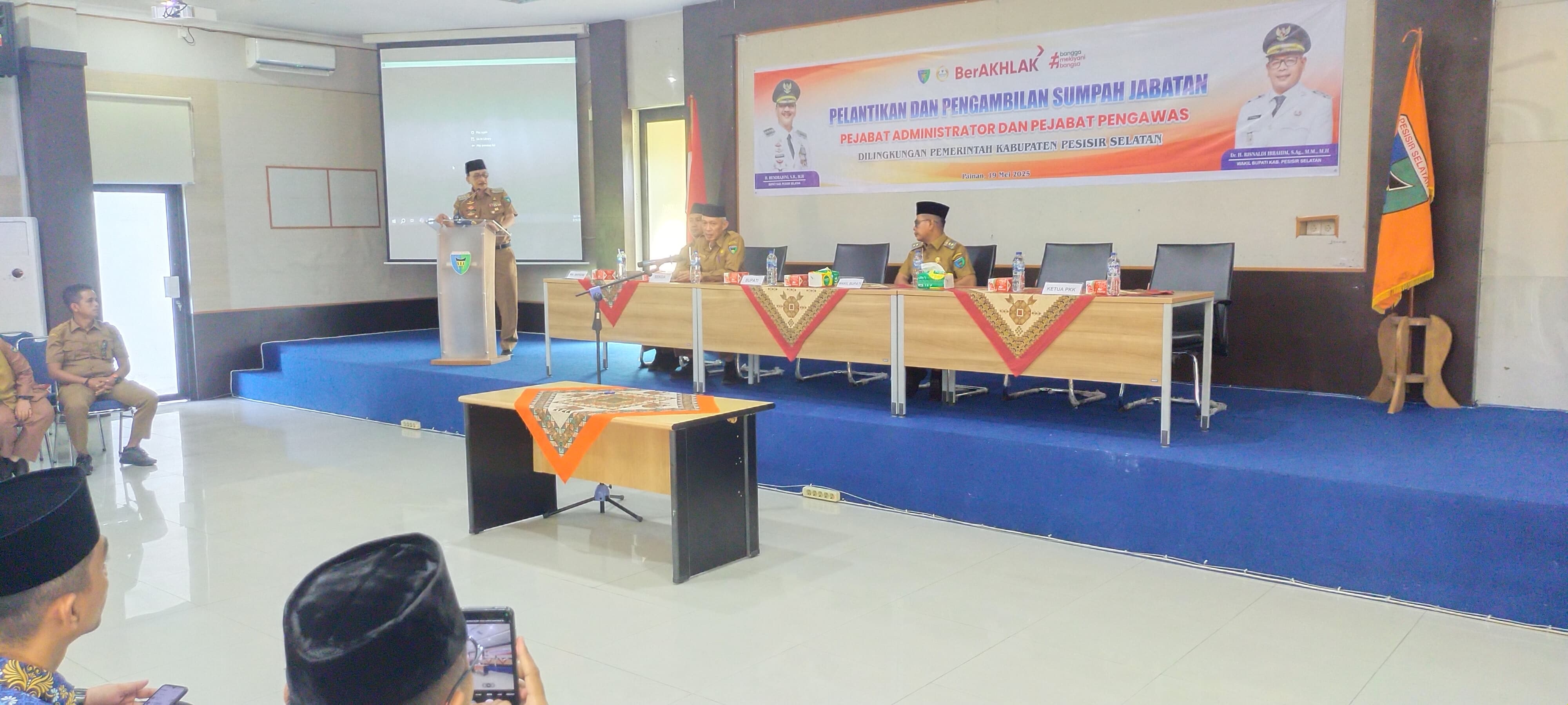 Pelantikan Dan Pengambilan Sumpah Jabatan Pada Pejabat Administrator Dan Pejabat Pengawas Dilingkungan Pemerintah Kabupaten Pesisir Selatan